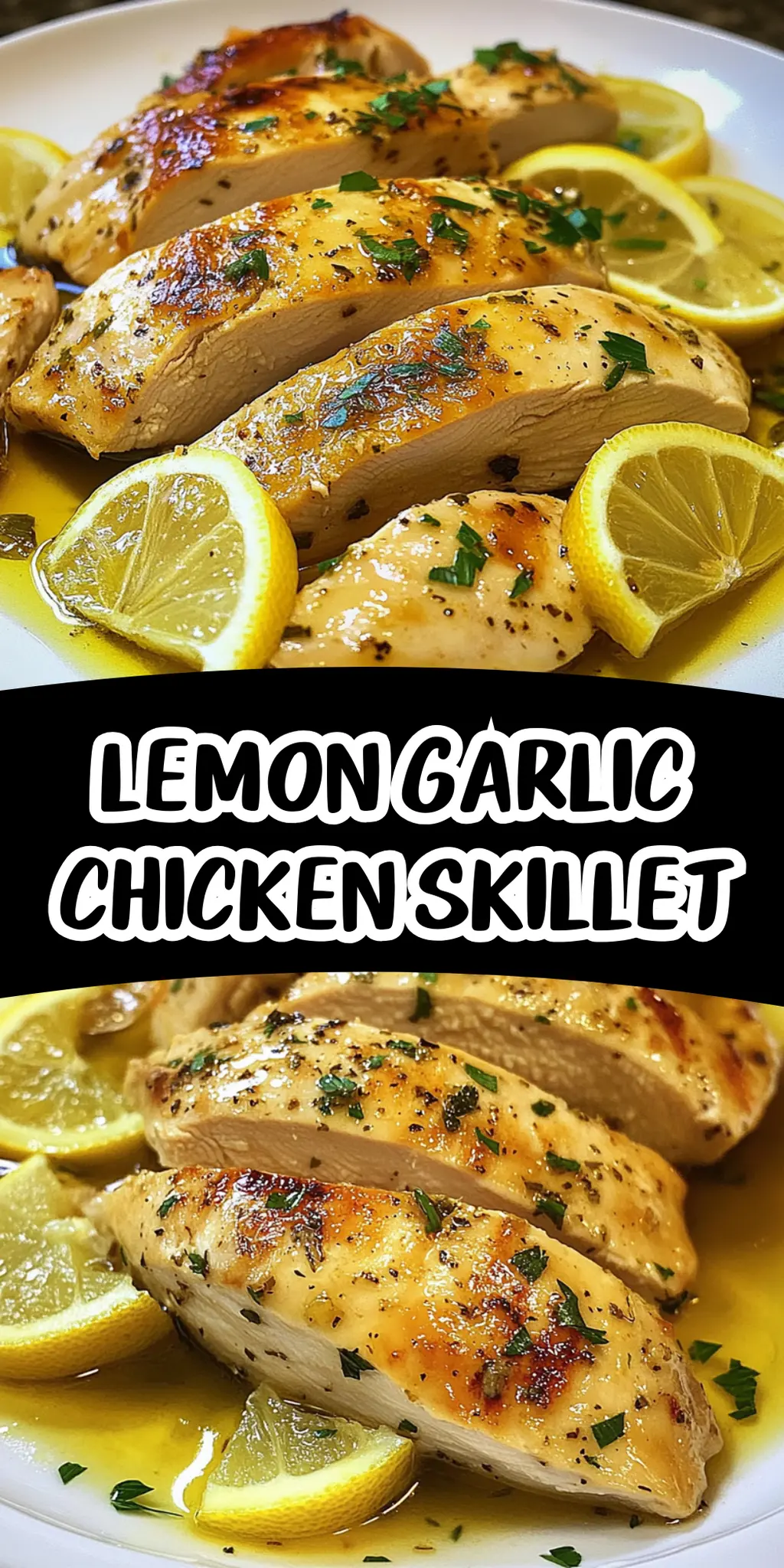 Garnish and Serve: Finally, sprinkle the chopped fresh parsley on top of the chicken for a bright, fresh finish. Serve immediately, and enjoy the tantalizing flavors of your Lemon Garlic Chicken Skillet!